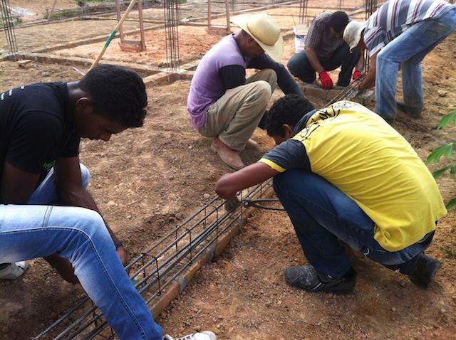 We drove to Pacajá and back yesterday. The team there had a few questions about setting the steel for the bond beam on top of the foundations. Ivanildo talked to the engineer here in Marabá. Then we drove out, helped them get started for a couple of hours, had lunch with them and met the team from Columbus, and then drove home. We left the house at 6 a.m., and got home at 6 p.m. It was a good day.